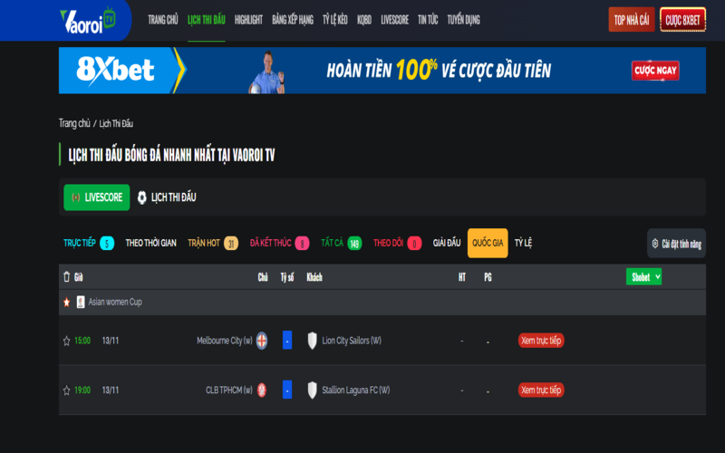 Một trong những điểm ấn tượng nhất là cách Vaoroi TV điều chỉnh mọi thông tin theo nhu cầu người Việt. Tất cả lịch thi đấu đều được quy đổi chuẩn sang giờ Việt Nam (GMT+7), giúp loại bỏ hoàn toàn tình trạng nhầm giờ – vấn đề phổ biến khi theo dõi bóng đá châu Âu.