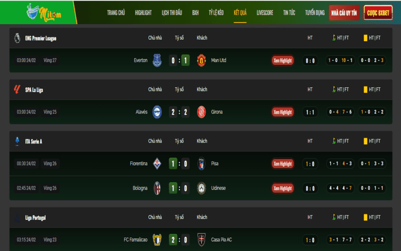 Việc theo dõi kết quả bóng đá với độ chính xác cao và tốc độ cập nhật tức thì luôn là ưu tiên hàng đầu của giới mộ điệu. Chính vì vậy, Mitom Live tập trung phát triển hệ thống đồng bộ dữ liệu theo thời gian thực bảo đảm mọi thay đổi về tỉ số, cầu thủ ghi bàn, thẻ phạt hay thời lượng bù giờ đều được phản ánh ngay lập tức.