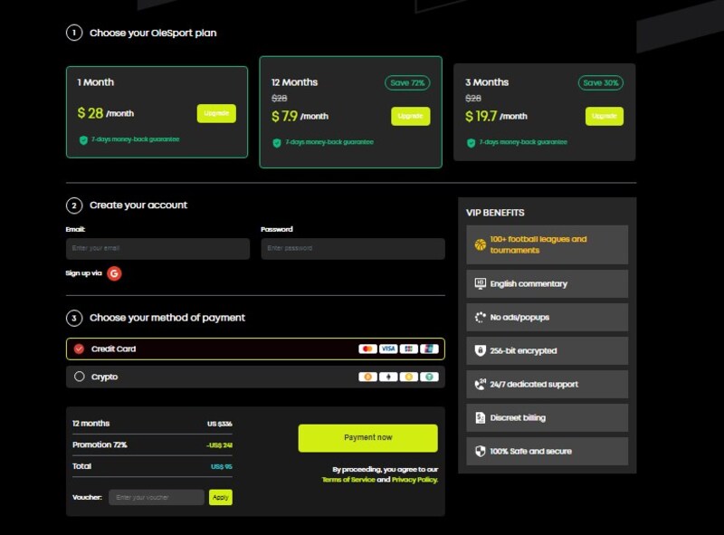 Điều đặc biệt là hệ thống thanh toán được mã hóa an toàn, giúp bạn yên tâm tuyệt đối khi giao dịch. Ngoài ra, Olesport TV còn thường xuyên tung ra các chương trình khuyến mãi hấp dẫn dành cho người dùng mới, giúp bạn có thể trải nghiệm trọn vẹn với chi phí tiết kiệm.
