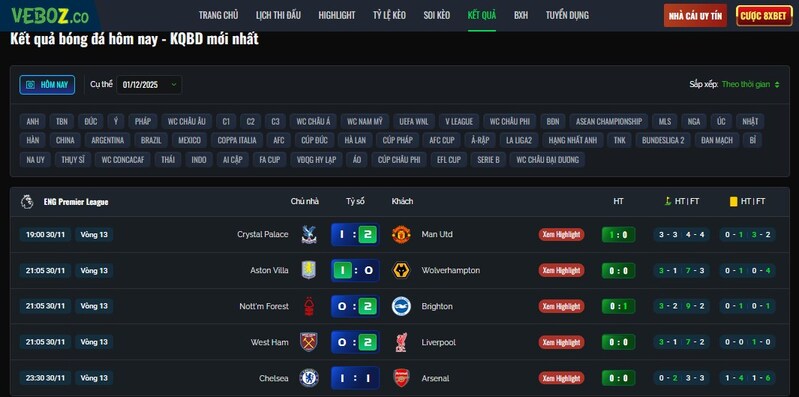Điểm mạnh đầu tiên giúp Về Bờ Live được số đông yêu thích chính là khả năng cập nhật kết quả gần như tức thì. Trong khi nhiều trang khác có độ trễ từ 1 đến 5 phút, nền tảng này gần như “chạy theo từng nhịp bóng”.
