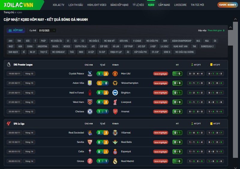 Một điểm tôi cực kỳ thích ở Xoilacvn là trải nghiệm người dùng. Website được thiết kế trực quan, mượt mà và dễ thao tác. Khi mở bảng ket qua bong da, tôi nhìn thấy ngay: